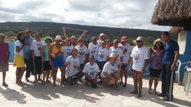 Ela relatou que uma equipe formada por educador físico, assistente social, psicóloga e facilitadoras coordenaram atividades de hidroginástica, canto, exercícios físicos e muito forró que aconteceu literalmente ao pé-de-serra.
